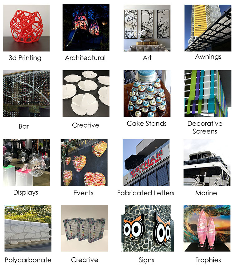 Plastic fabrication and supplier with over 30 years of experience bringing life to designs. Capabilities include: laser and CNC router cutting, thermoforming, prototyping, 3d printing, engraving, printing - full sheet and cut to size sales. Working with a range of materials including: acrylic, Plexiglas, Perspex, polycarbonate, PVC, HDPE, Celuka, Seaboard, aluminium composite material and more.