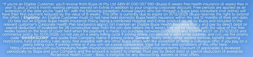 Get six weeks free when you join Bupa directly on eligible products.* Plus an ongoing corporate discount. See special discount code below.